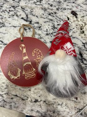 2 Gnome Ornament Set, Wood & Plush